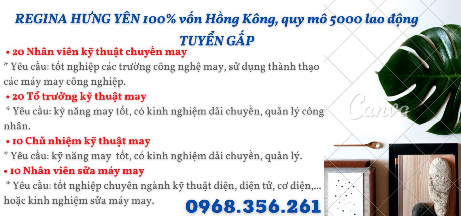 CÔNG TY REGINA HƯNG YÊN TUYỂN DỤNG