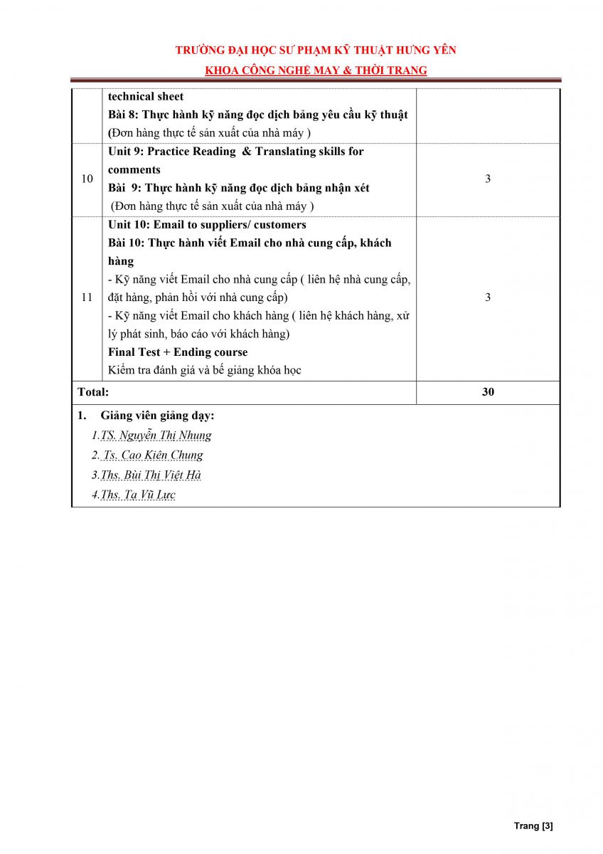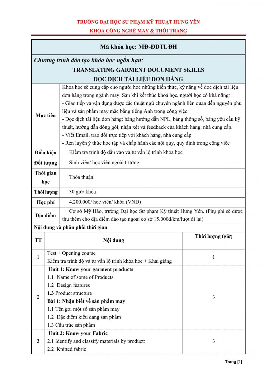 Khoa Công nghệ May và Thời trang - UTEHY trân trọng thông báo tuyển sinh khóa học ngắn hạn: “ĐỌC DỊCH TÀI LIỆU ĐƠN HÀNG”